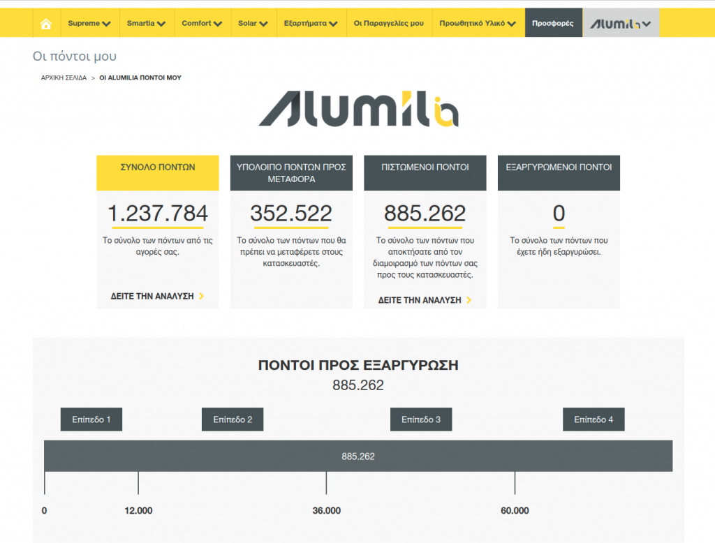 As part of the engagement of MyAlumil customers & users, a state-of-the-art and sophisticated Loyalty System was developed, which rewards the users of the platform, based on their purchases.