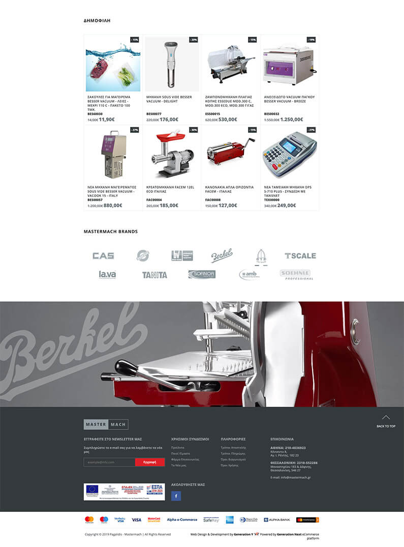 Αντικείμενο της εταιρίας μας είναι η εισαγωγή και το χονδρικό – λιανικό εμπόριο επαγγελματικού εξοπλισμού κουζίνας και ενδεικτικά των παρακάτω προϊόντων: ηλεκτρονικοί ζυγοί παντός τύπου, απλές και αυτόματες ζαμπονομηχανές, κρεατομηχανές, κοπτικά τροφών, μηχανήματα συσκευασίας, επεξεργασία τροφίμων, απολυμαντές μαχαιριών κα. καλύπτοντας τις ανάγκες του ευρύτερου Επαγγελματικού και Βιομηχανικού Χώρου.